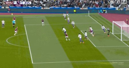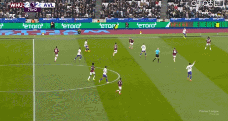 第1分钟,完美开局,费尔南德斯抢断成功小角度破门,西汉姆联1-0维拉