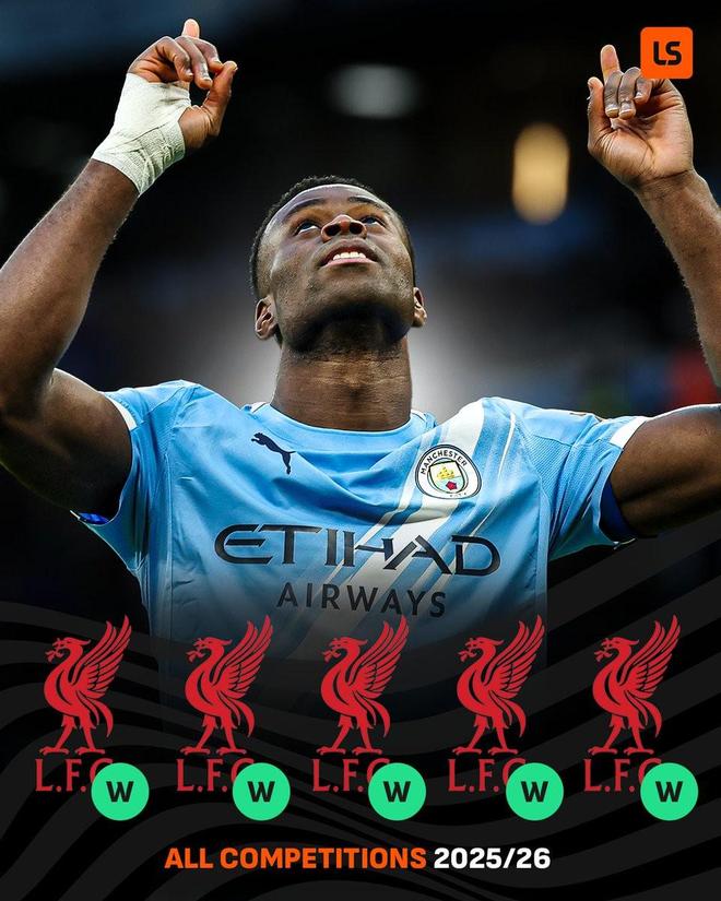 在此役曼城4-0大胜利物浦后,格伊本赛季代表水晶宫和曼城已5次击败红军,且格伊全部打满全场。
