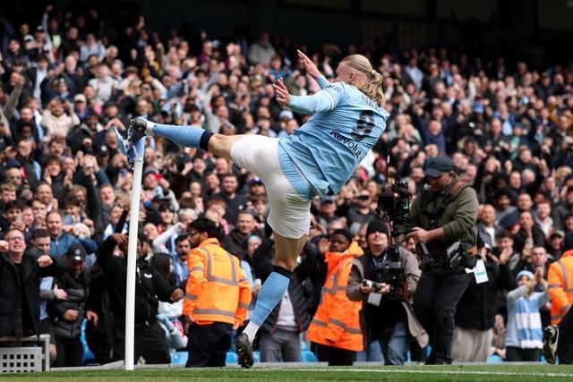 此役主场对阵利物浦,哈兰德在比赛上半场打入两球,下半场第57分钟再入一球,上演帽子戏法。