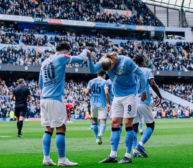 在今天晚上进行的足总杯四分之一决赛曼城主场对阵利物浦的比赛中,哈兰德在第57分钟完成帽子戏法,帮助球队取得4-0领先。