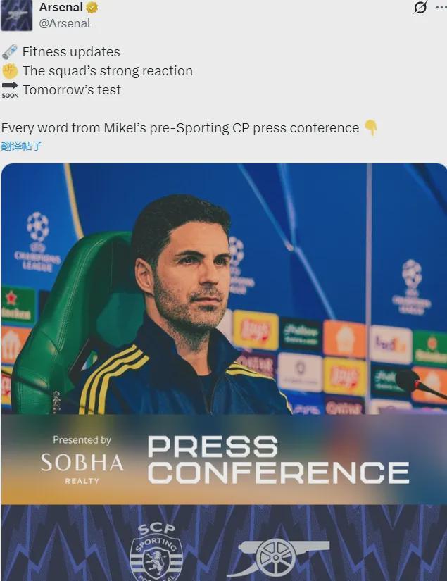 阿尔特塔出席了赛前新闻发布会,我们来看看伤病问题。